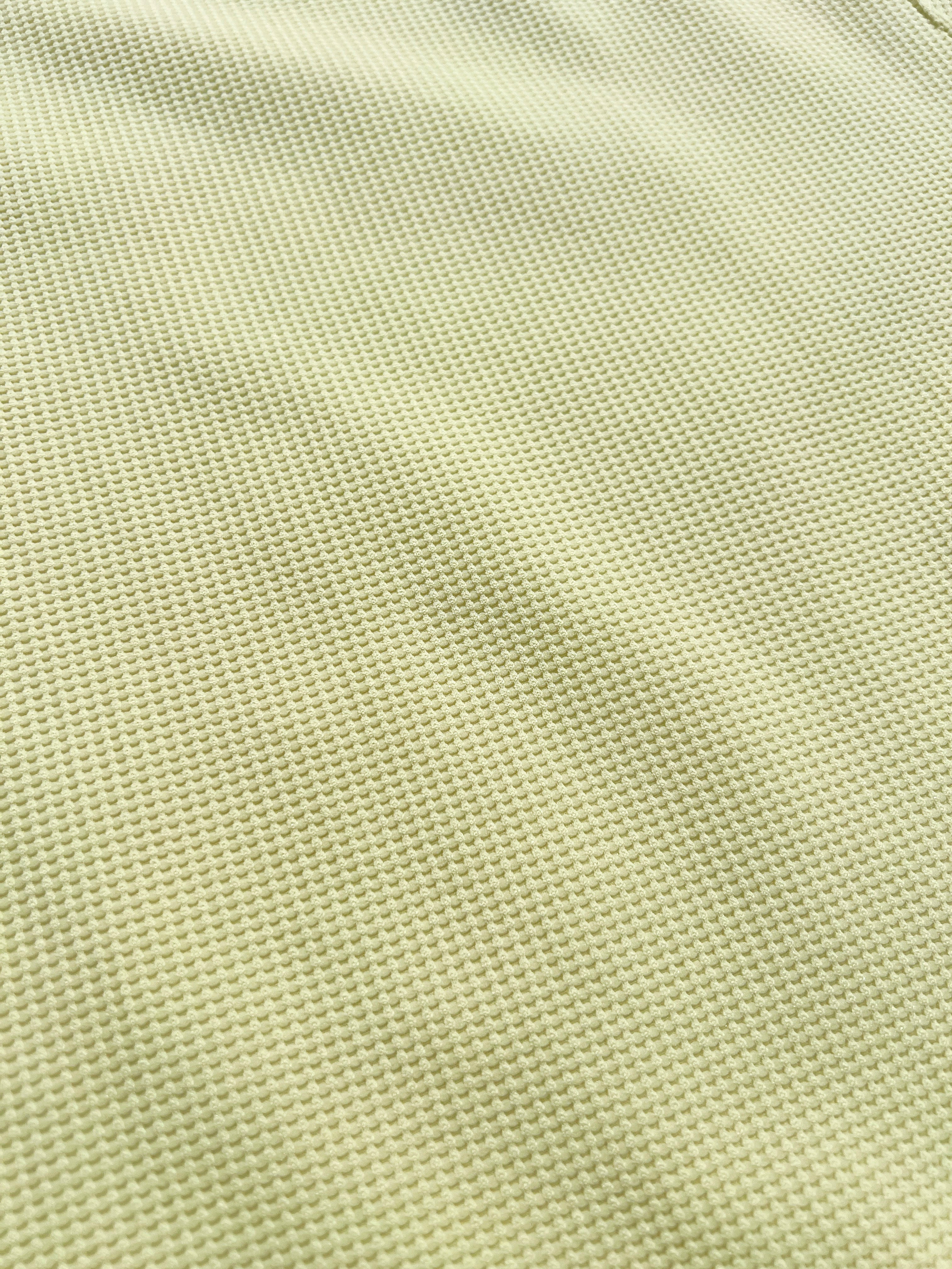 組織の中に伸縮性のあるポリエステルが組み込まれた独特の反発感を持つワッフル素材を使用したクルースウェット。