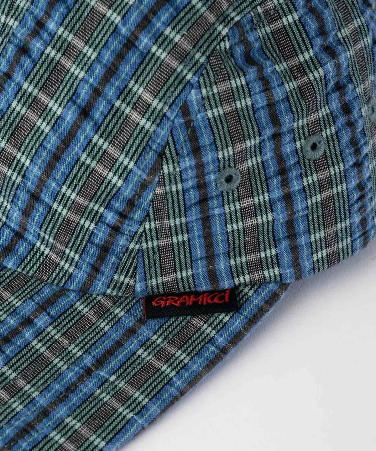 1980年代、カリフォルニアの小さな倉庫で、クライマーが欲しい機能をすべて具現したGRAMICCIブランドは誕生しました。その当時の空気感を表現したオリジナルグラミチ "O.G." シリーズ。チェック柄のサッカー素材は、清涼感かつ、ヴィンテージ感のある風合いで、ロングビル(長い庇)といったディテールも当時の空気感を再現しています。