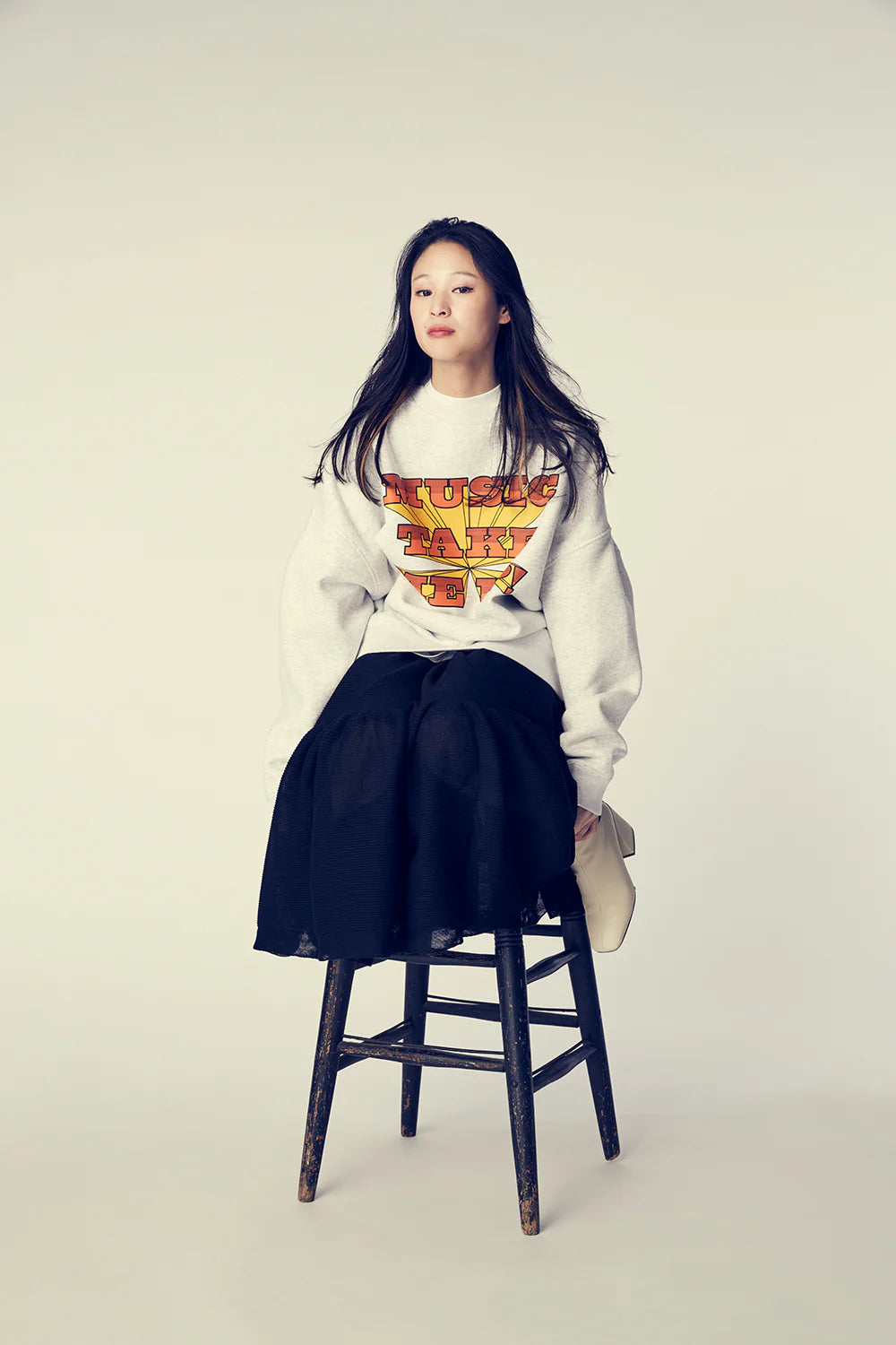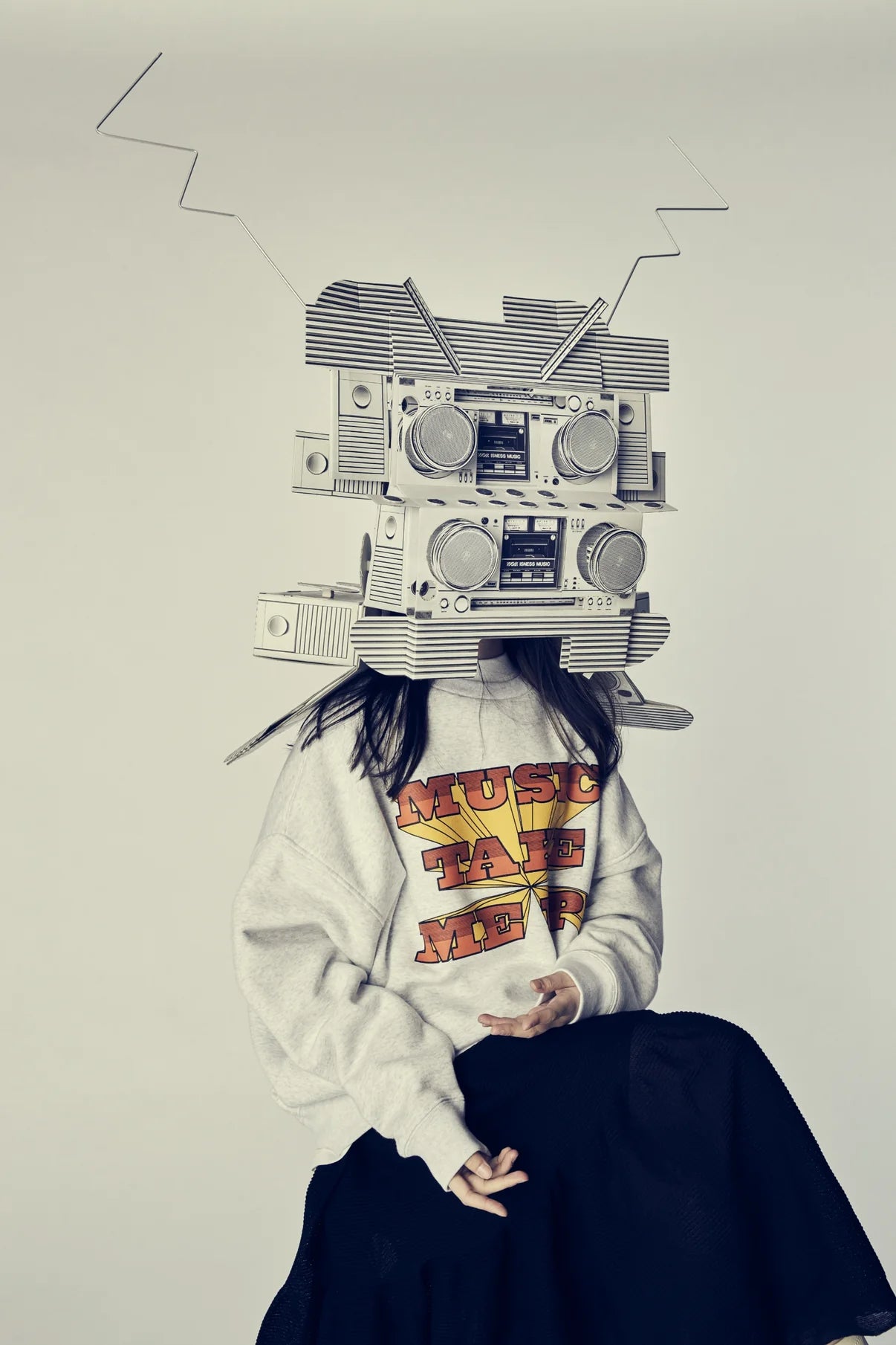 "Music takes me up"と言うメッセージを乗せたスウェットシャツ。