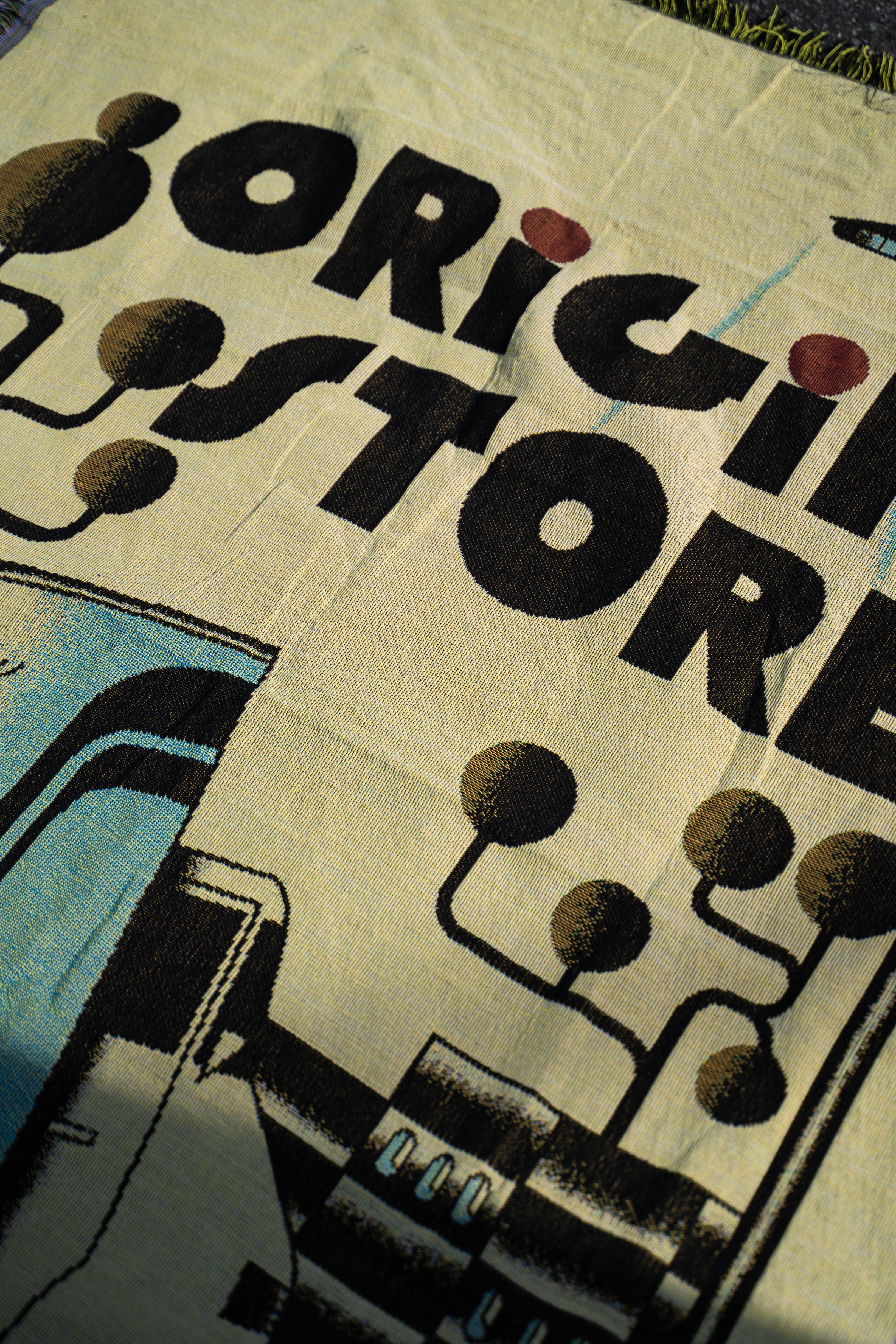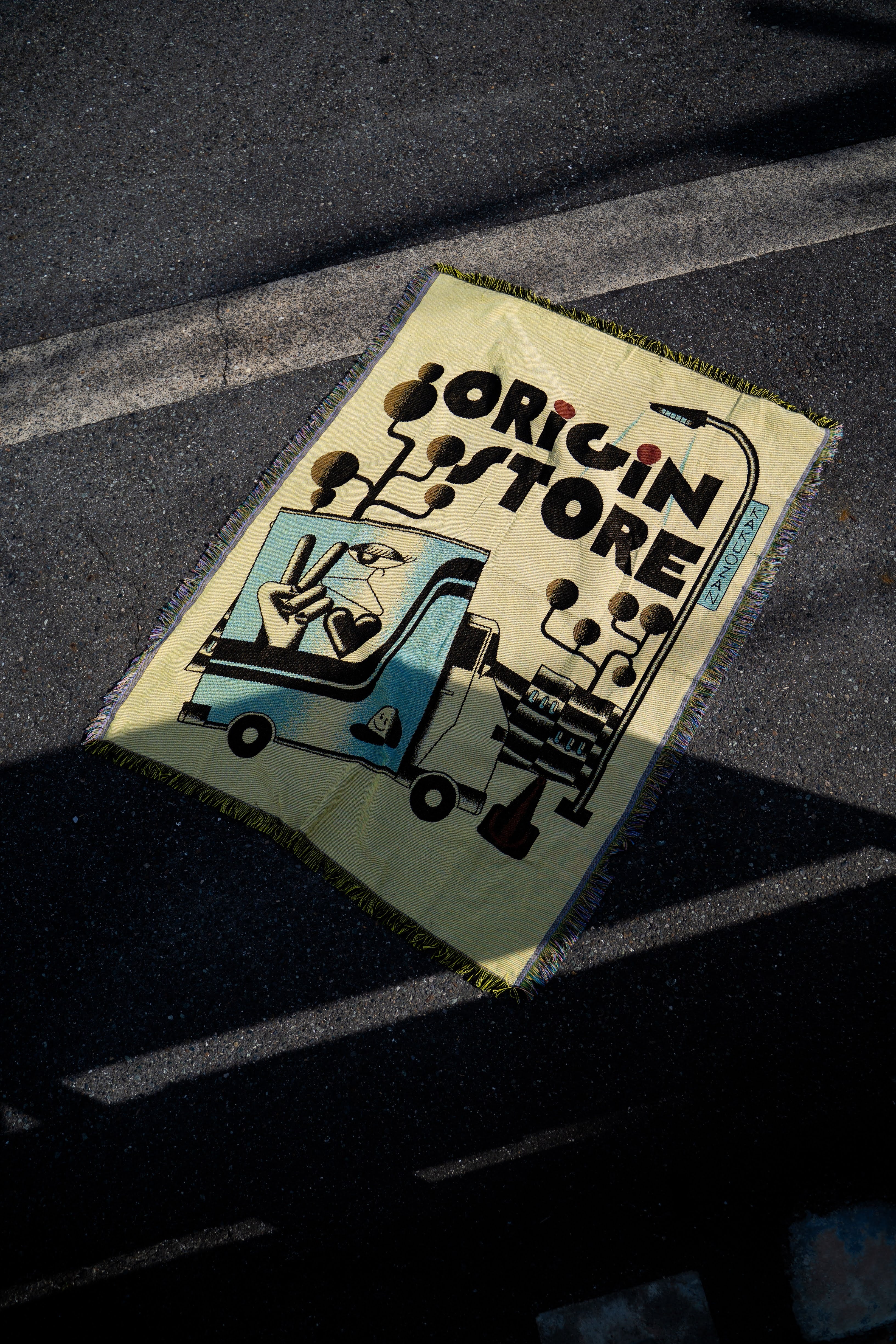Origin Storeと覚王山をテーマに描き下ろしていただいた作品がジャガード織りで表現されています。