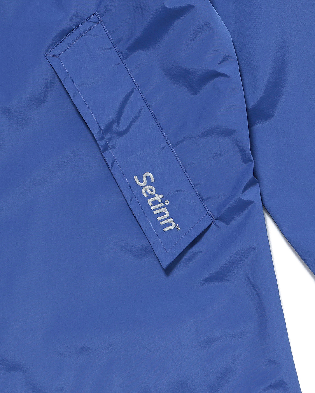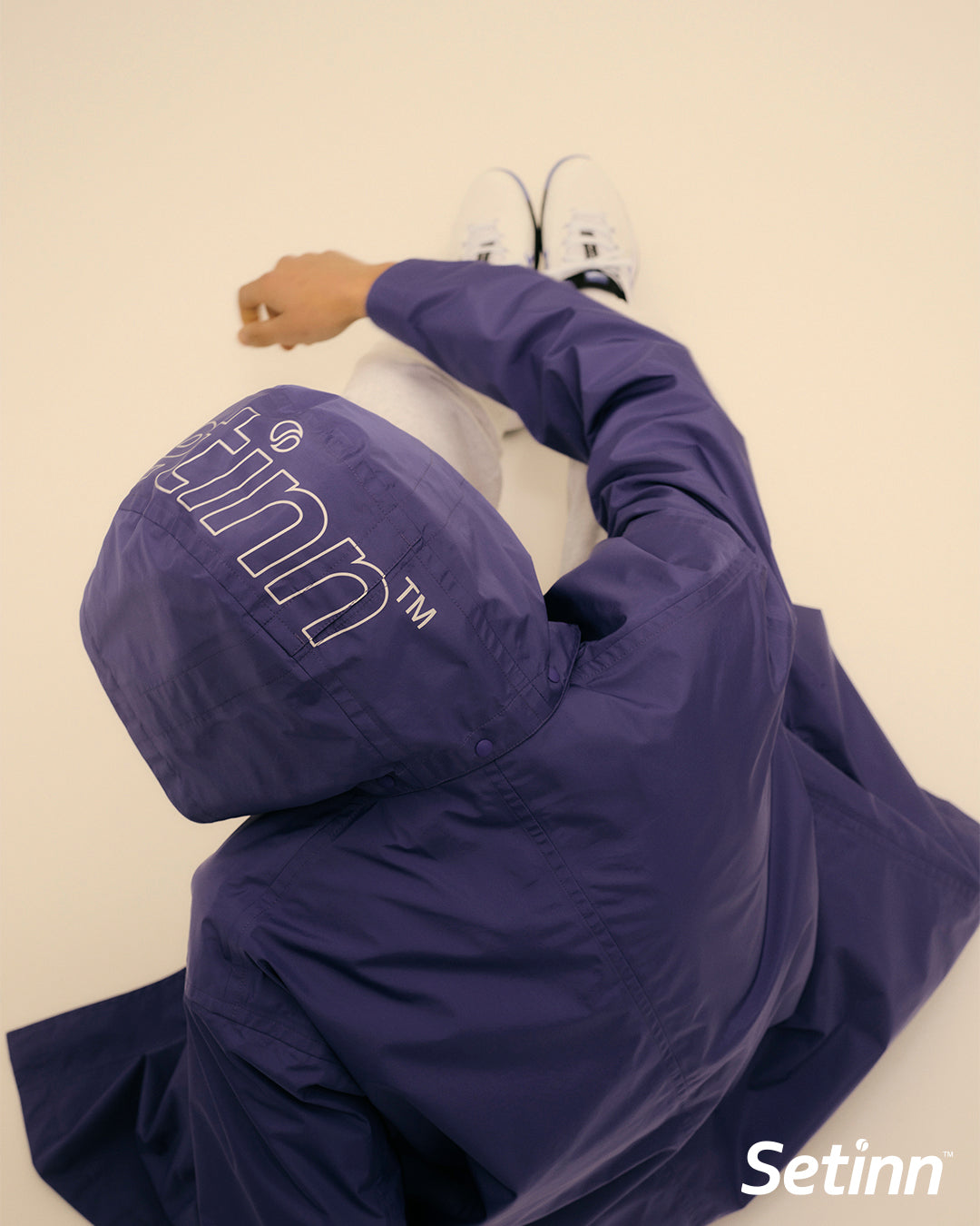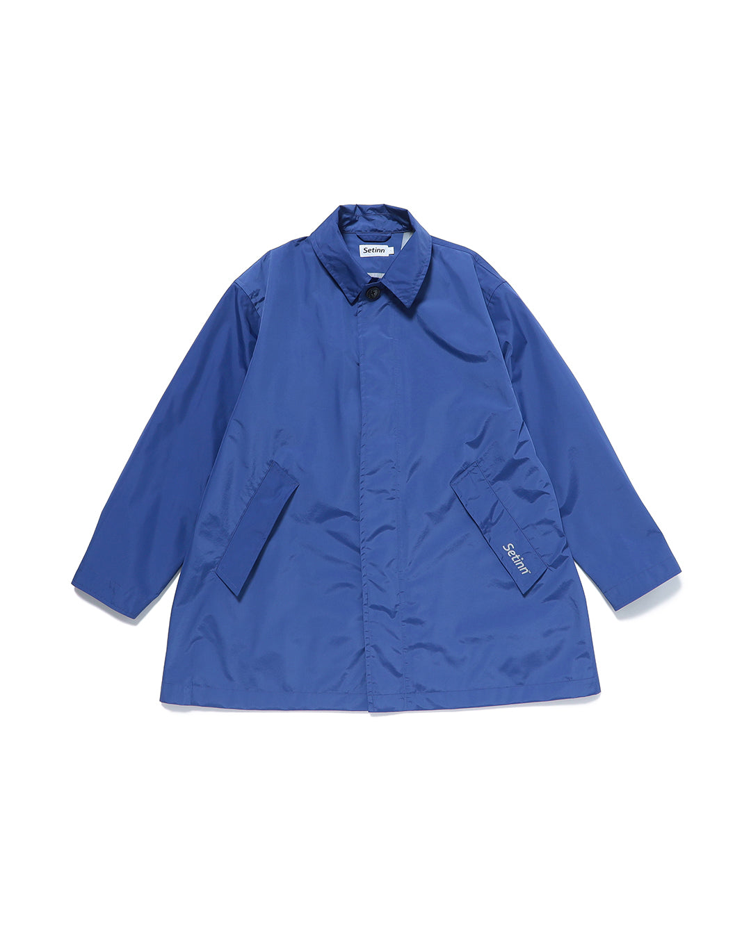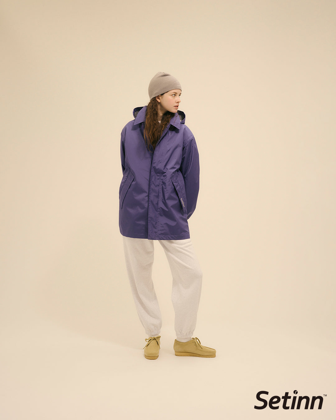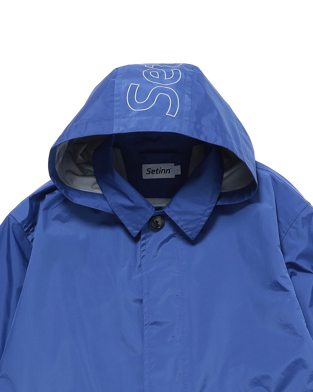 撥水性のある高機能素材を使用した、ミドル丈のコート。フード部分は取り外し可能で、ブランドロゴがリフレクタープリントされています。左のポケット口に反射糸で施されたロゴの刺繍入りでアクセントになっています。