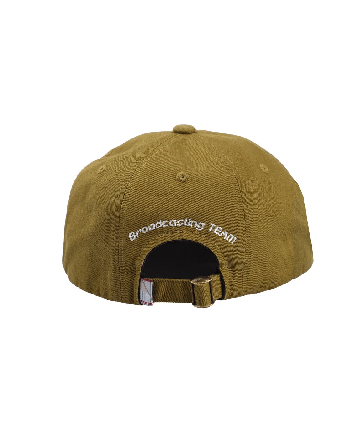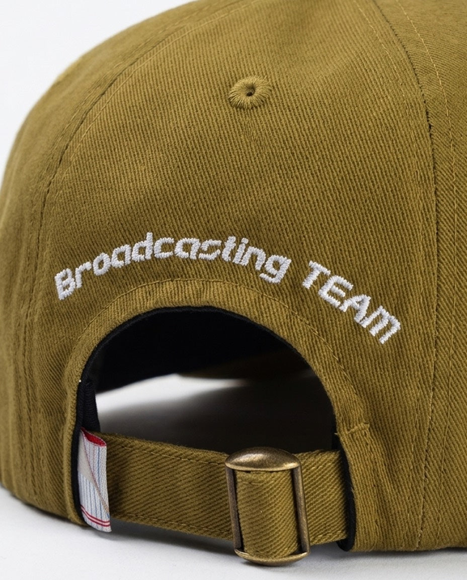 今回のコラボレーションテーマ “BROADCASTING TEAM” のデザインを落とし込んだ、オリジナルシェイプの6パネルキャップ。