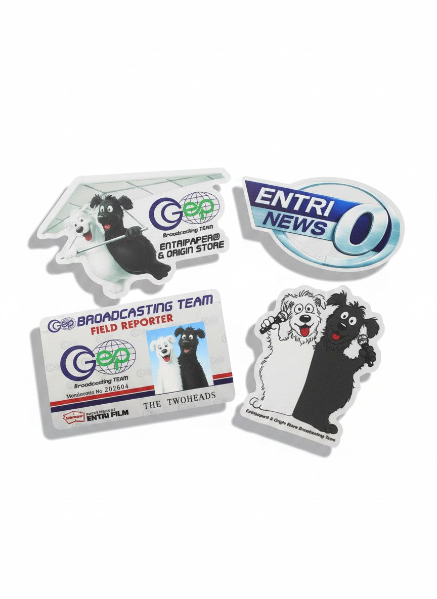 今回のコラボレーションテーマ “BROADCASTING TEAM” を落とし込んだステッカーセット。入館証サイズで仕上げるなど、細かなディテールにもこだわっています。