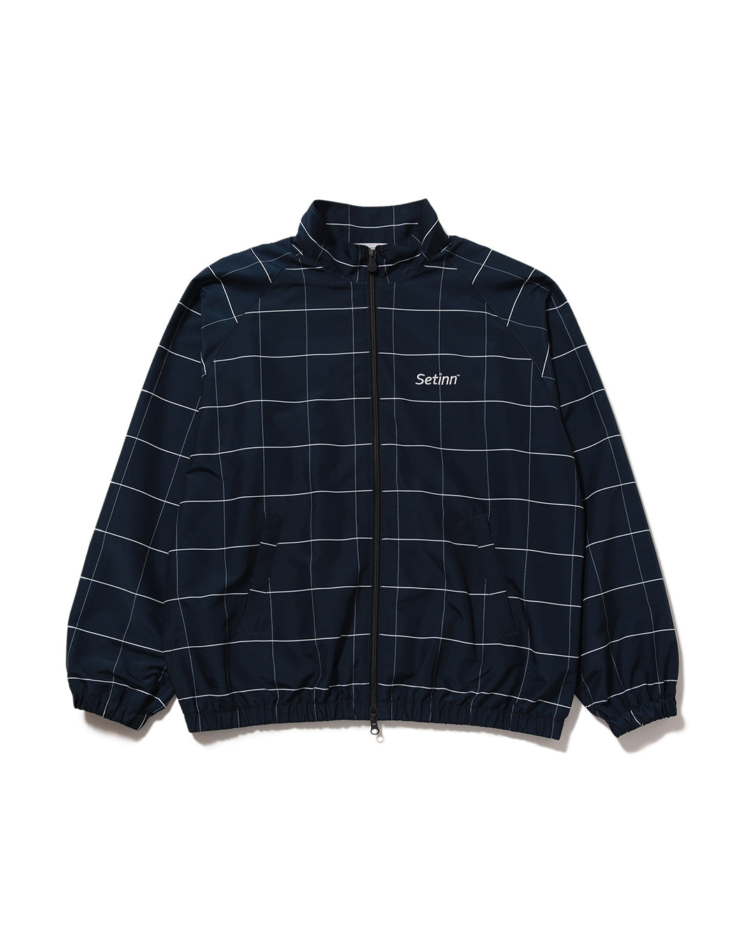 総柄プリントを施したオリジナル生地のフルジップ型トレーニングジャケット。